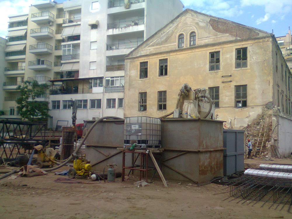 Κατασκευή τριώροφου υπόγειου σταθμού αυτοκίνητων με  Διαφραγματικούς τοίχους (Δ600) και φρεατοπασσάλους (Φ1200 και Φ1500) με χρήση μπεντονιτικού αιωρήματος. Μέθοδος γενικής εκσκαφής σύμμεικτη (top to down και ανοιχτή). Τοποθέτηση προκατασκευασμένων υποστυλωμάτων σε μεθοδολογία κατασκευής Top to Down. Πρώτη Πανελλήνια εφαρμογή.