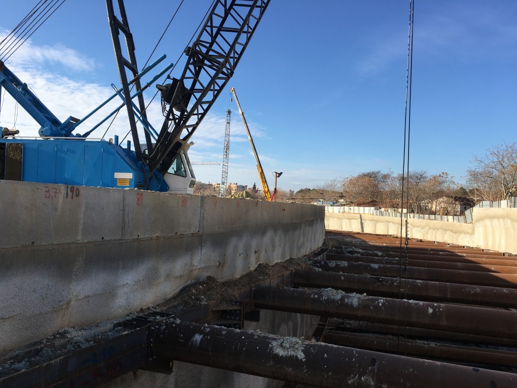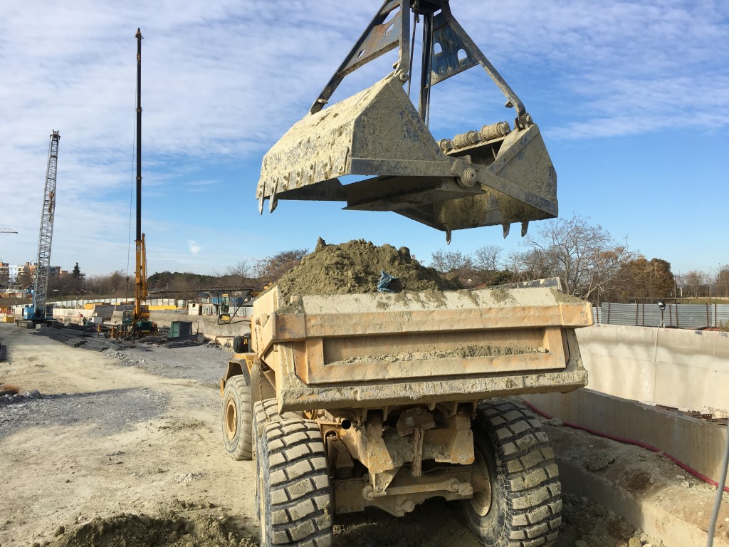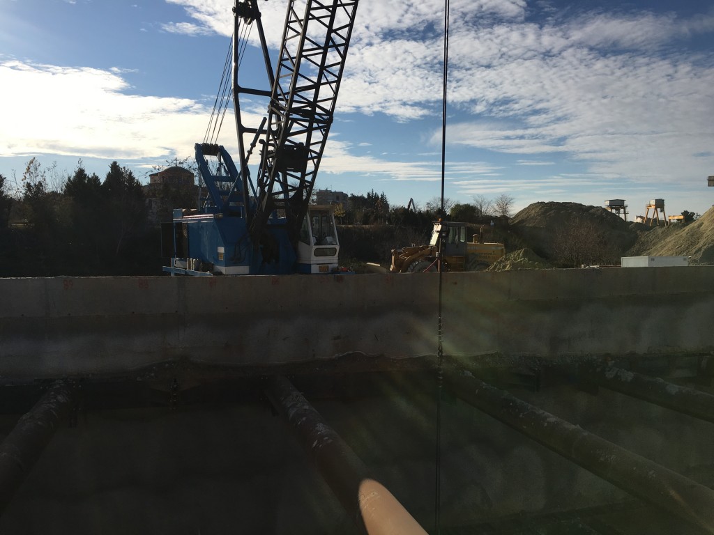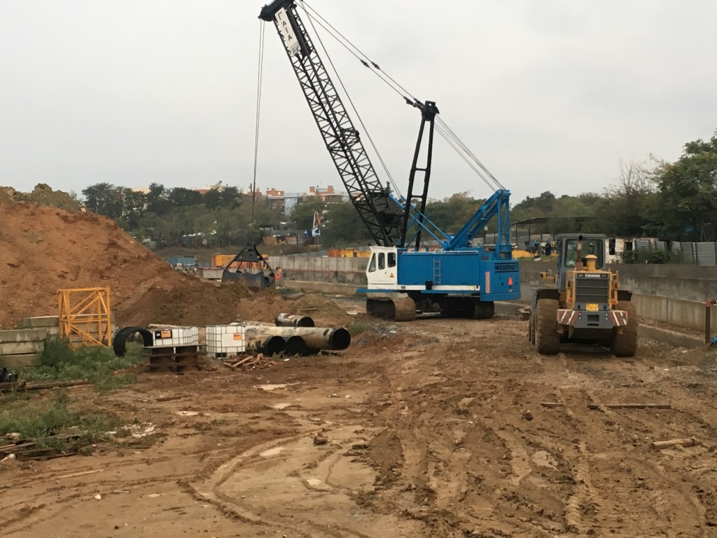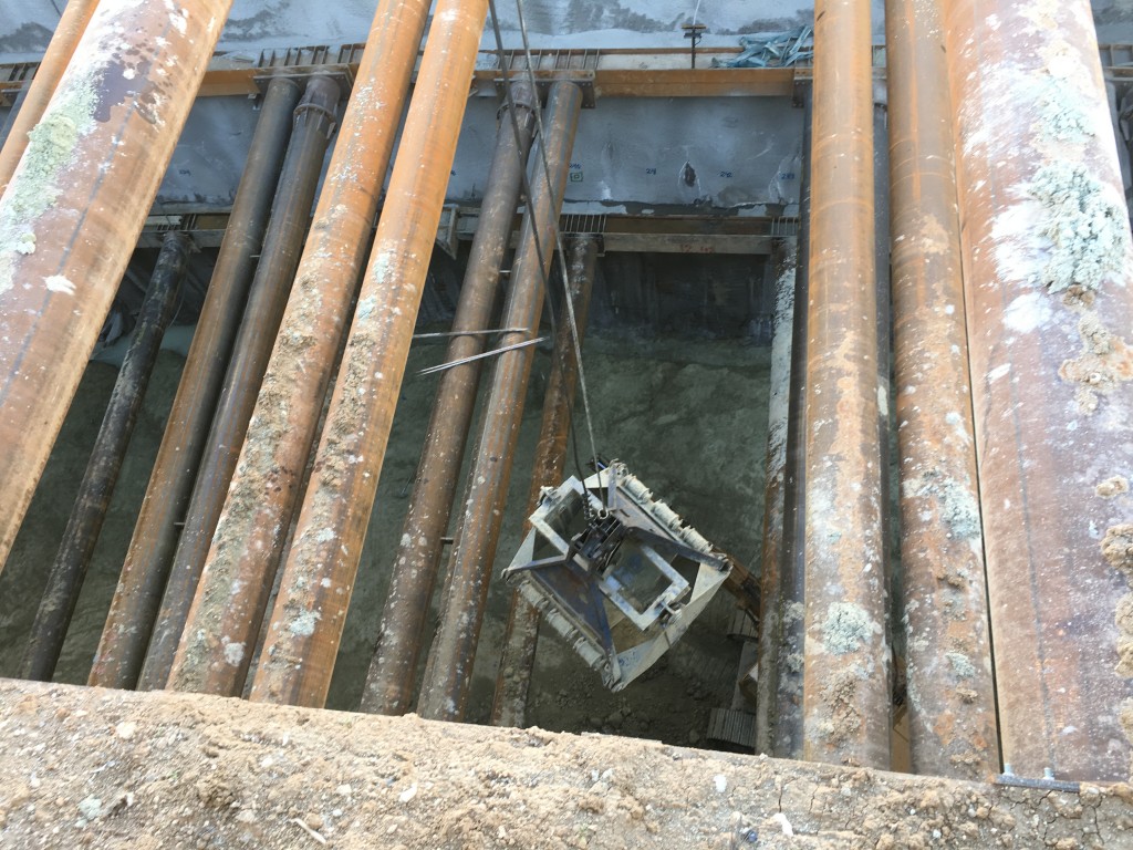 Βαθιά εκσκαφή ορύγματος (τμήμα Ι-από Χ.Θ 8+163 έως 8+350) του Μετρό Θεσσαλονίκης, στην περιοχή Αλατίνη του Δήμου Πυλαίας, με την χρήση ερπυστριοφόρου γερανού (Weserhutte 190 SW) εξοπλισμένο με αχιβάδα χωρητικότητας 5 m³.